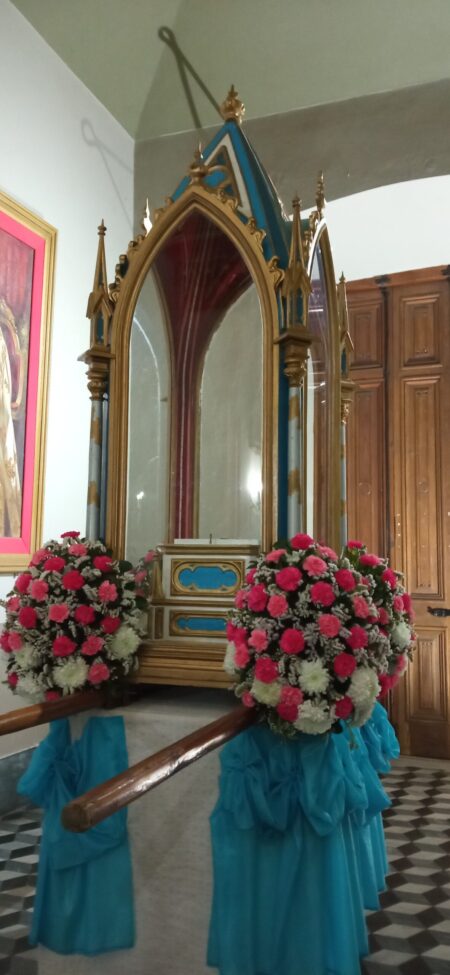 En esta Sección compartiremos en imágenes la ornamentación floral del trono festivo de la Virgen del Valle (sitio donde se coloca a la Imagen de la Virgen) ,altares del Santuario, cureña (donde sale en procesión la imagen), Gruta de la Virgen del Valle y lugares donde transcurra la Fiesta.