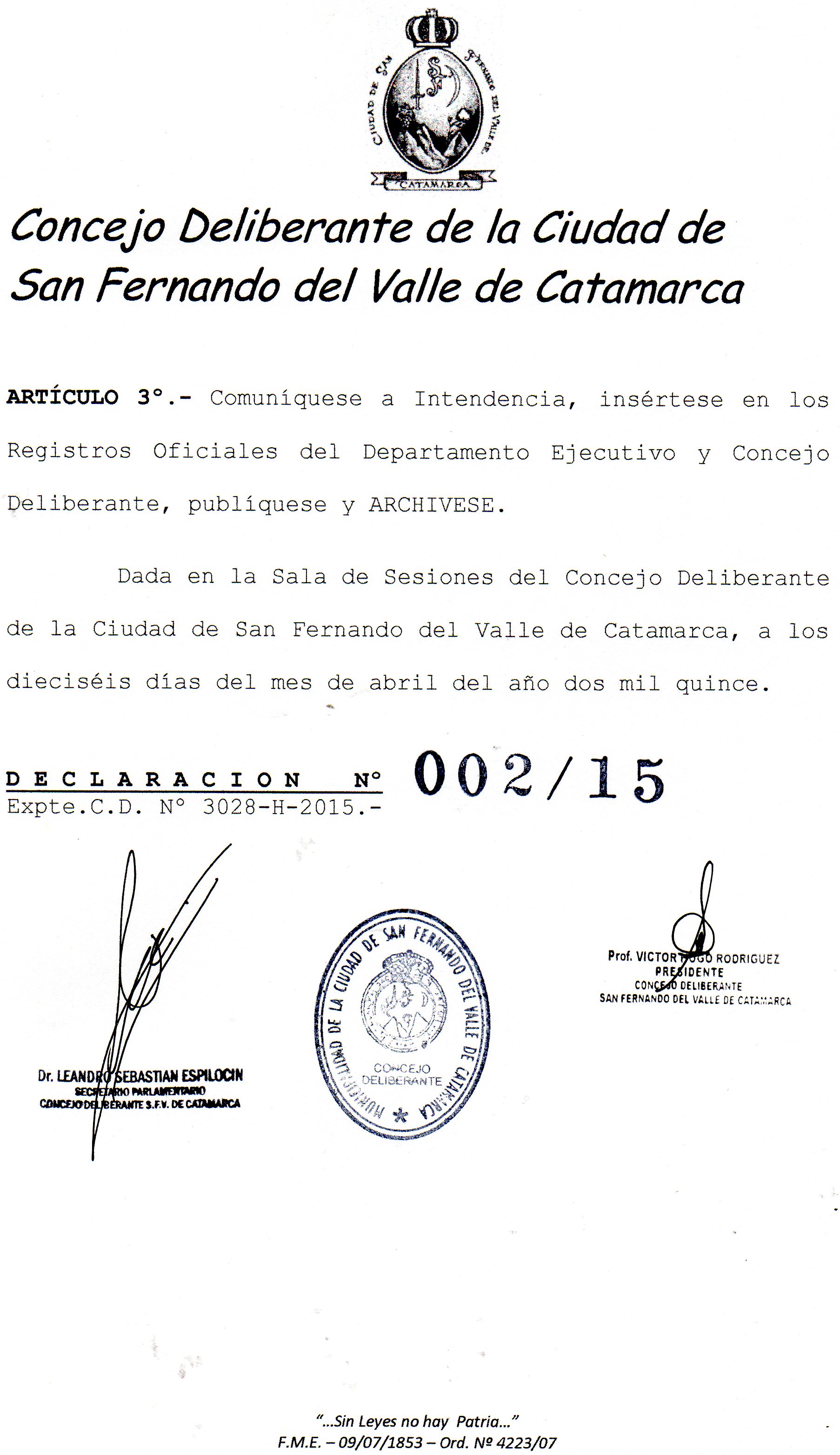 En la Sexta Sesión Ordinaria del Concejo Deliberante de Catamarca, se ha declarado de Interés de la Cuidad, al Sitio Web www.morenitadelvalle.com.ar mediante proyecto presentado, por la Concejal María Jimena Herrera