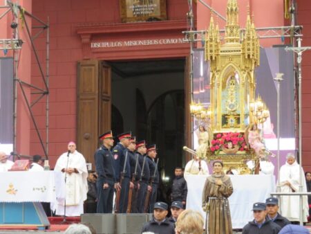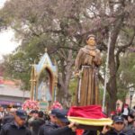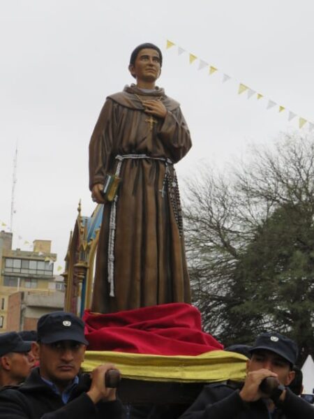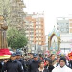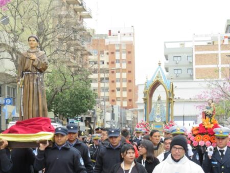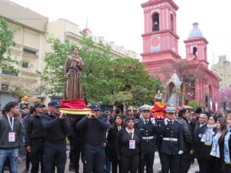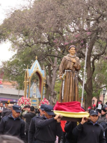 Al concluir la celebración eucarística, el sonido de las campanas y los sones de la Banda de Música de la Policía de Catamarca marcaron el comienzo de la procesión con la Sagrada Imagen de la Virgen del Valle, acompañada por San José y el Beato Mamerto Esquiú, alrededor de la plaza 25 de Mayo.