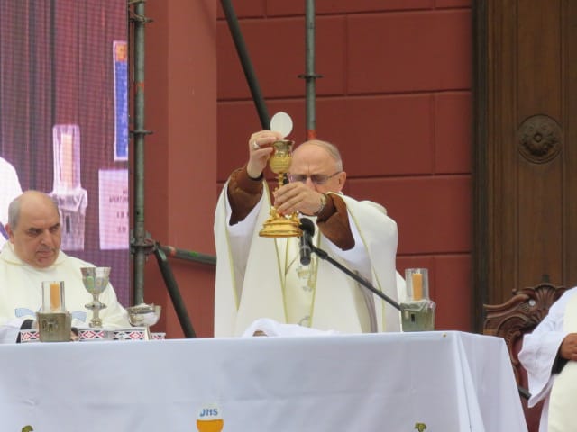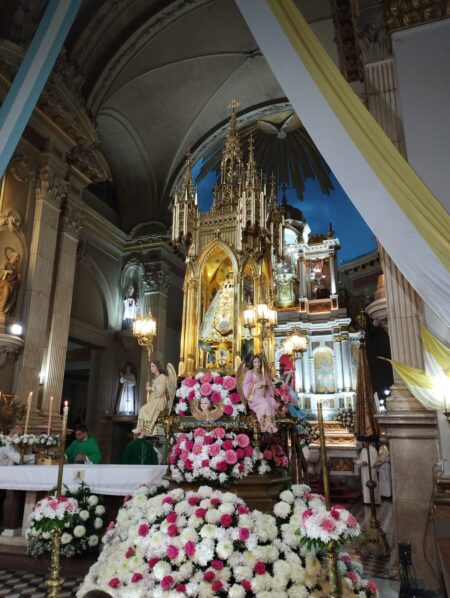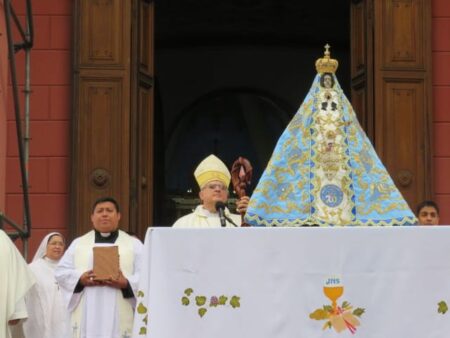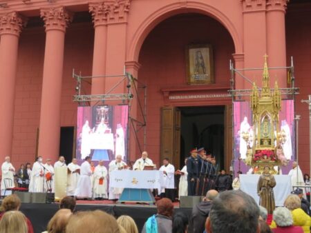 Luego de ser colocada en el trono festivo se dio inicio a la Santa Misa, presidida por Mons. Urbanč y concelebrada por el vicario general, padre Julio Murúa; el rector del Santuario mariano, padre Gustavo Flores, y numerosos sacerdotes del clero catamarqueño.