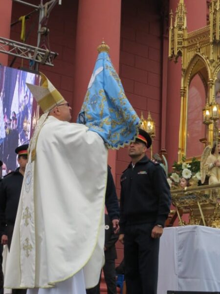 El Obispo destacó la importante presencia de la Policía de Catamarca, que está cumpliendo los 200 años de su creación, con su Banda de Música, tanto durante el triduo como en esta jornada especial.