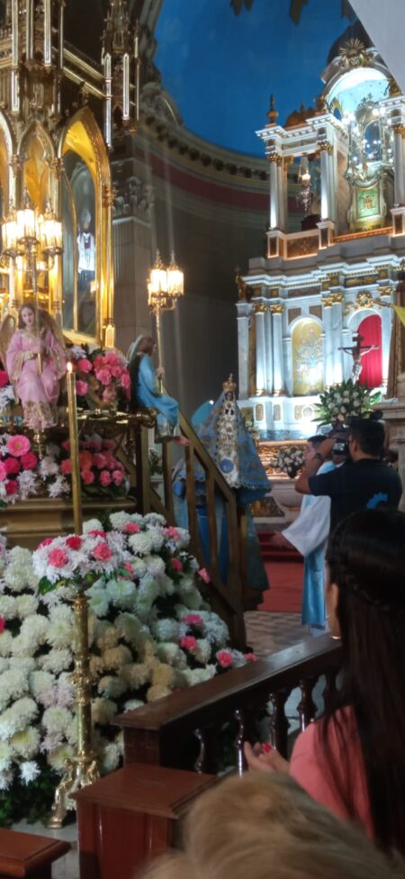 Una gran cantidad de fieles recibió con aplausos, vivas y pañuelos en alto a la Madre Morena, quien ya preside esta Fiesta que se incorporó al calendario de nuestra diócesis, para expresar la gratitud a la Virgen del Valle por la maternal protección que brinda a sus hijos.