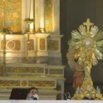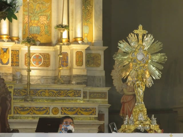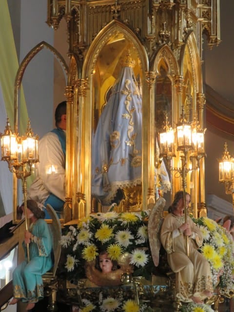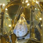 A las 18.00, el Rector del Santuario y Catedral Basílica tomó en sus brazos a la Imagen cuatro veces centenaria para trasladarla desde el Camarín hasta el Presbiterio, acompañado por un puñado de sacerdotes del clero local y los diáconos recientemente ordenados.