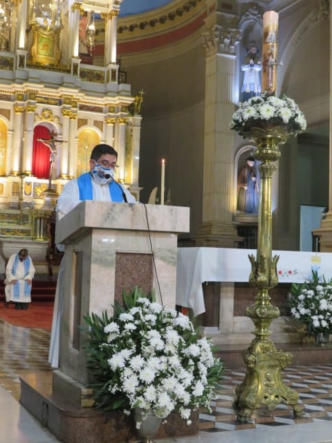 La tradicional ceremonia fue presidida por el Rector del Santuario del Santísimo Sacramento y Nuestra Señora del Valle – Catedral Basílica, Pbro. Gustavo Flores, debido a que el Obispo Diocesano, Mons. Luis Urbanc, se encuentra aislado preventivamente por caso de Covid-19 en la sede episcopal.