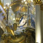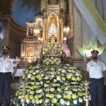 Luego fue colocada por el Rector en el Trono festivo, adornado con flores blancas y amarillas, desde donde presidirá las celebraciones litúrgicas durante el Septenario en su honor.