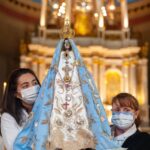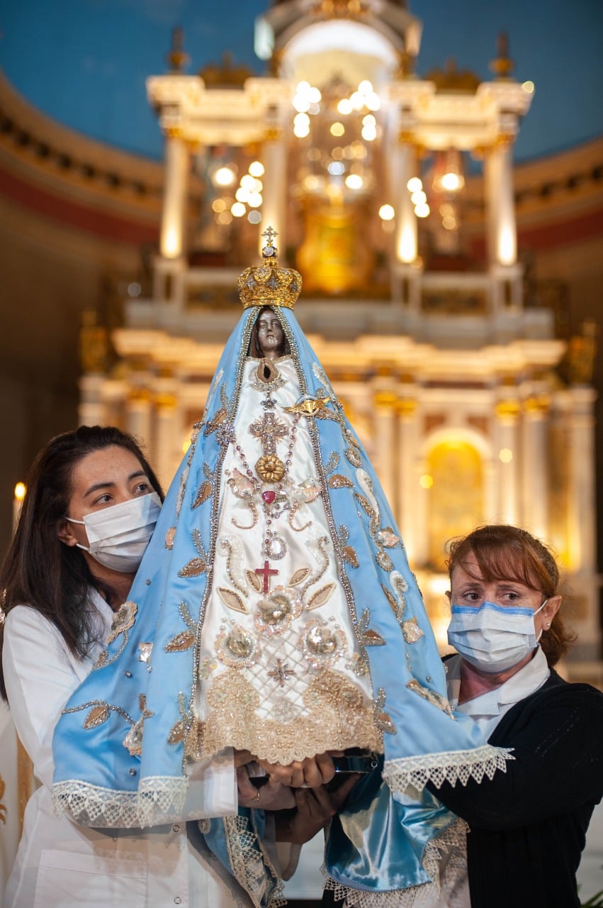 Un emotivo momento se vivió cuando el sacerdote entregó la Venerada Imagen a la médica Johana Carrizo (Hospital Monovalente Carlos G. Malbrán) y la enfermera Erica Silva (Hospital San Juan Bautista), representantes del sector de la Salud, quienes tuvieron el privilegio de llevarla alrededor del Altar Mayor, en un gesto de gratitud y homenaje a todos los médicos, enfermeros y asistentes que nos cuidan en este tiempo marcado por la pandemia, mientras se imploraba su amorosa protección de Madre.