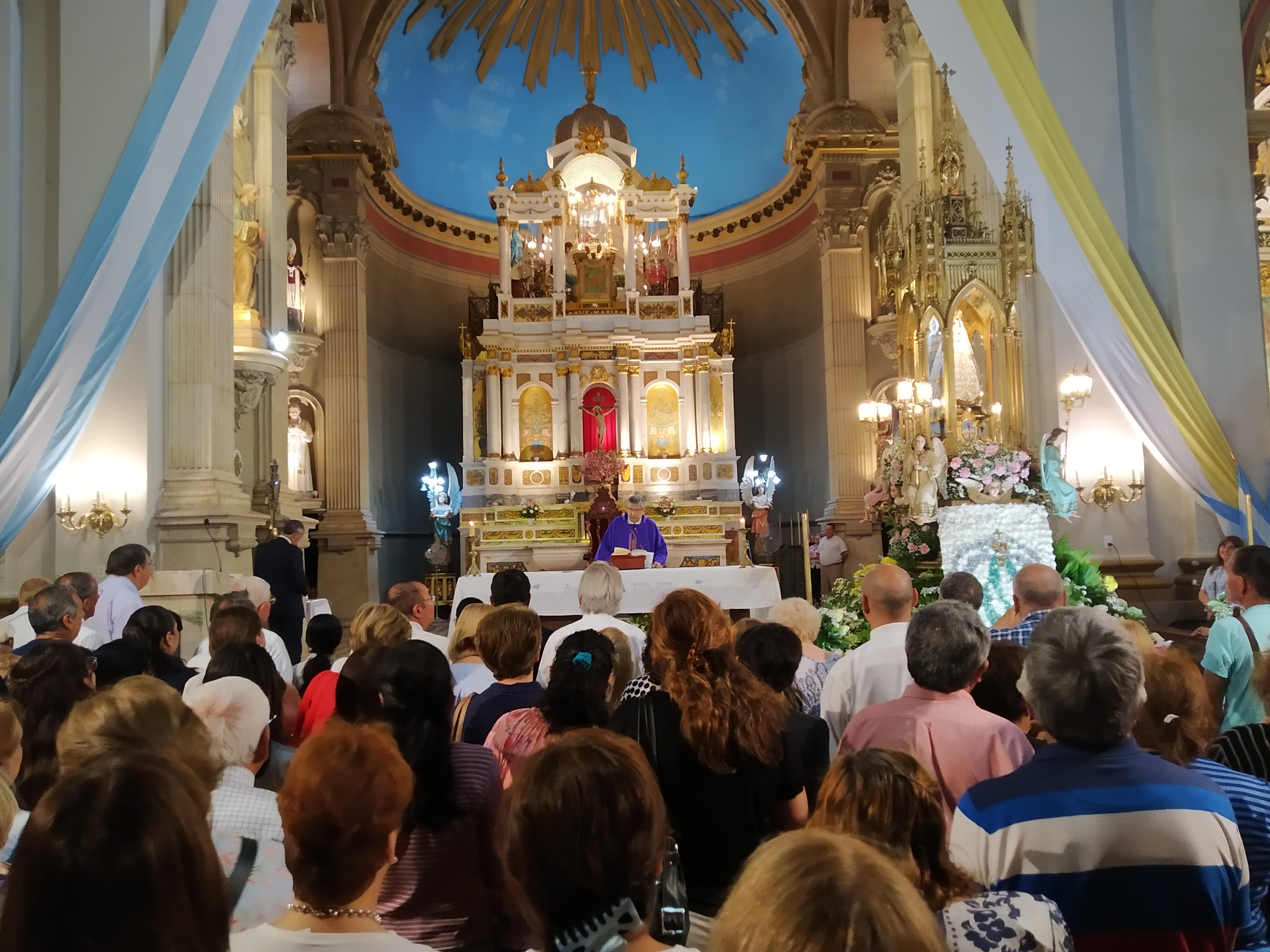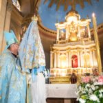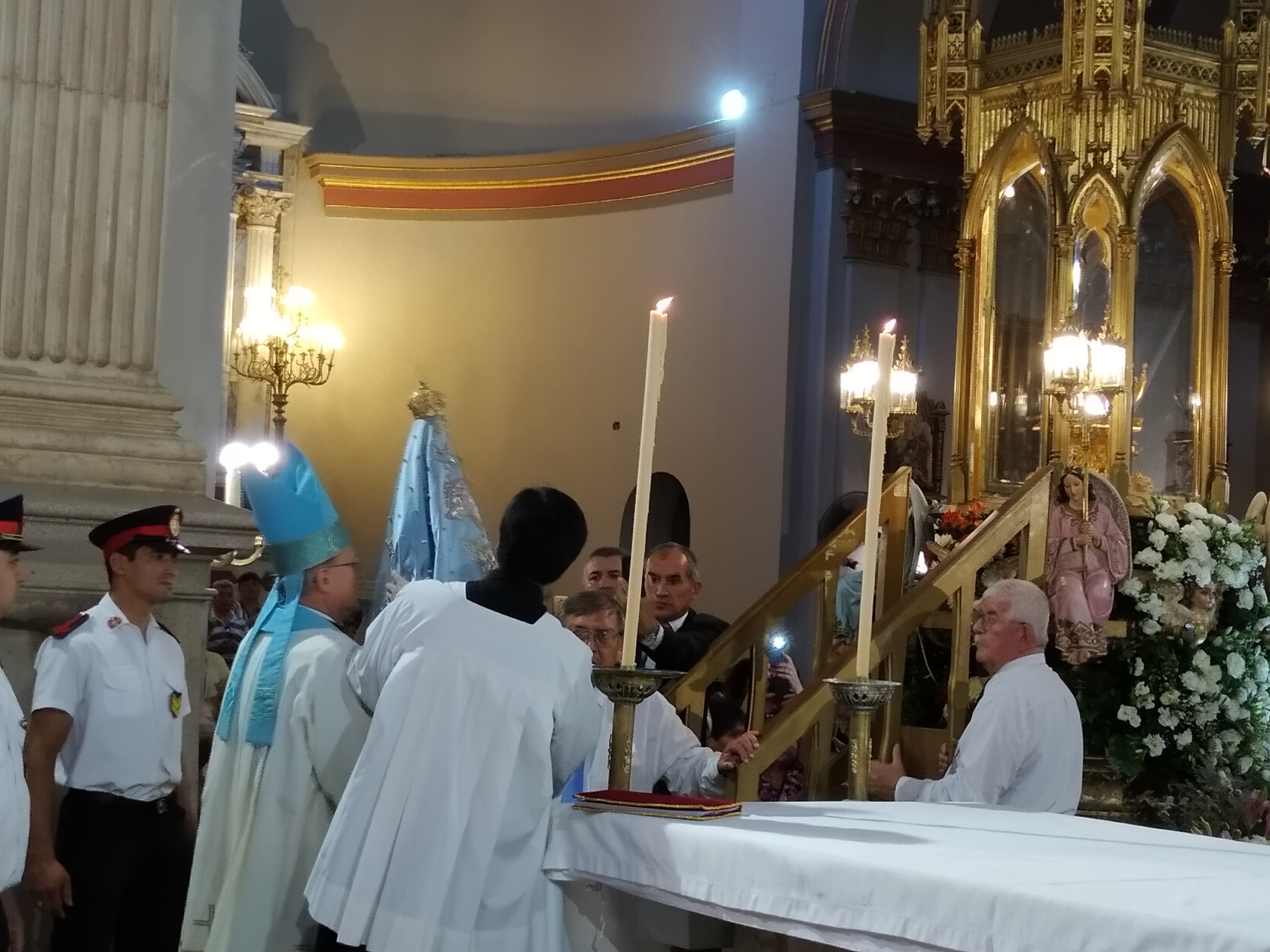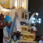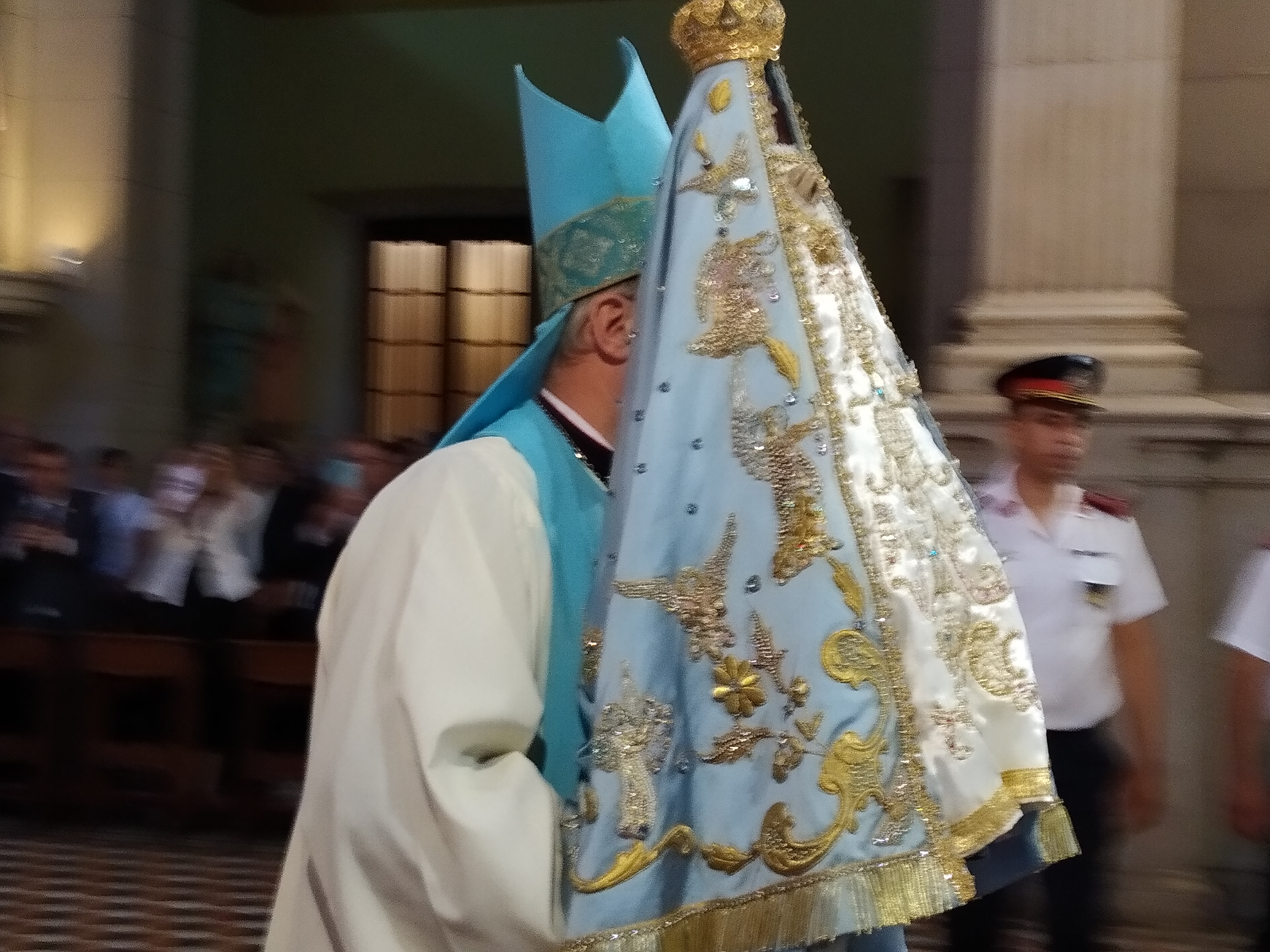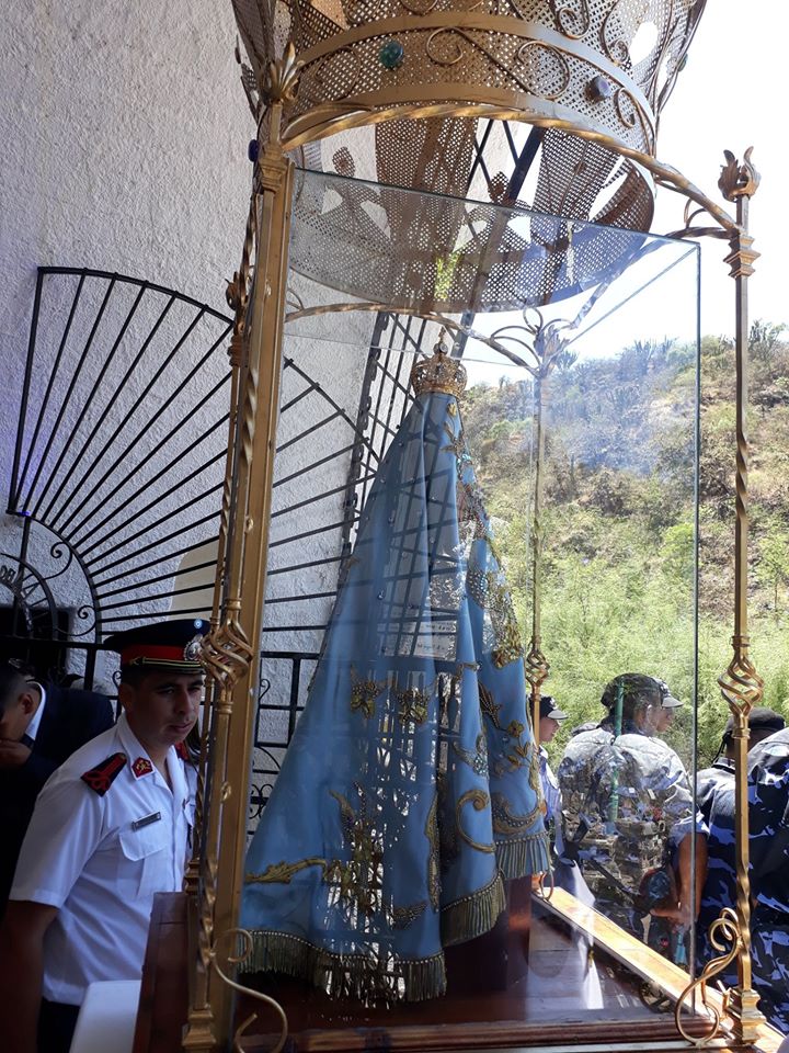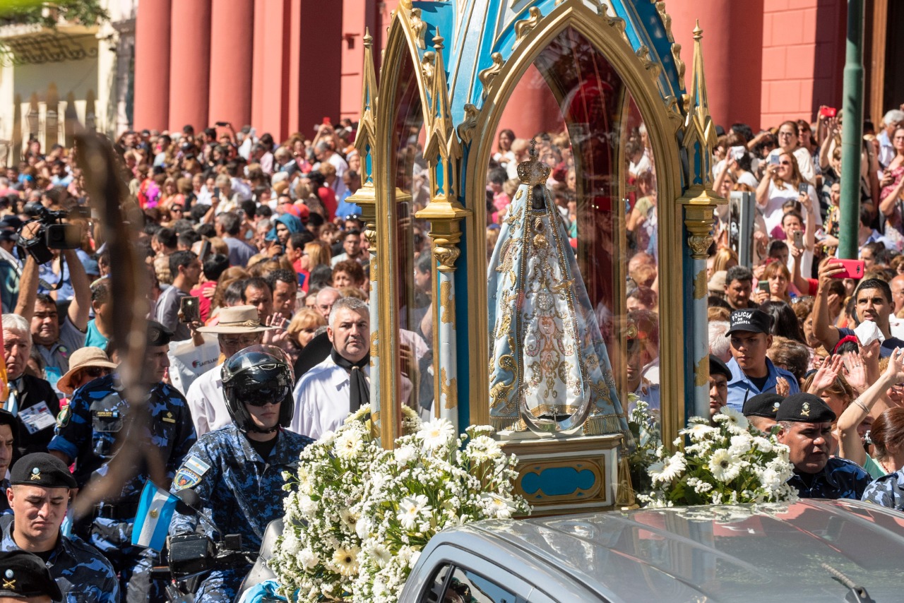 La Imagen de la Virgen del Valle bajó desde el Camarín hasta el Presbiterio de la Catedral Basílica y Santuario Mariano, en brazos del Obispo Diocesano, Mons. Luis Urbanc, acompañado por sacerdotes del clero catamarqueño.