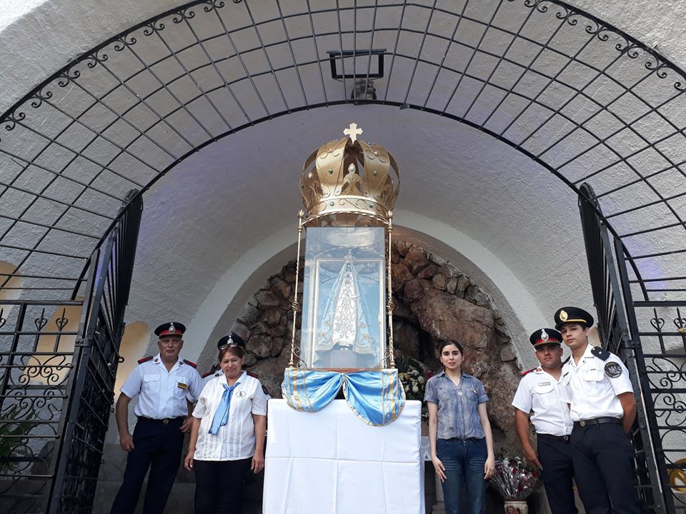A la Gruta de Choya, la Imagen bendita llegó alrededor de las 11.40. Allí, entre las montañas que invitan a la contemplación, fue recibida con el tradicional himno “Oh Virgen del Valle”, mientras Servidores Marianos y miembros de la Pastoral Carcelaria brindaban la bienvenida a los participantes, ofreciéndoles un vaso de agua, como expresión de solidaridad.