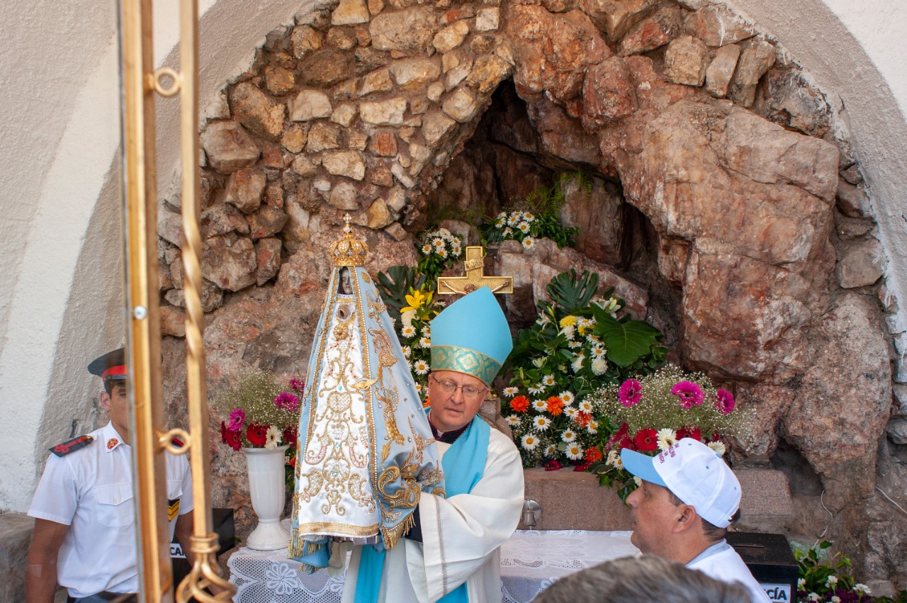 En ese lugar sagrado, se vivió un momento muy especial, cuando el Obispo Diocesano la colocó en el templete que resguarda la Gruta del hallazgo, y guió la Oración del Año y IV Congreso Mariano Nacional.