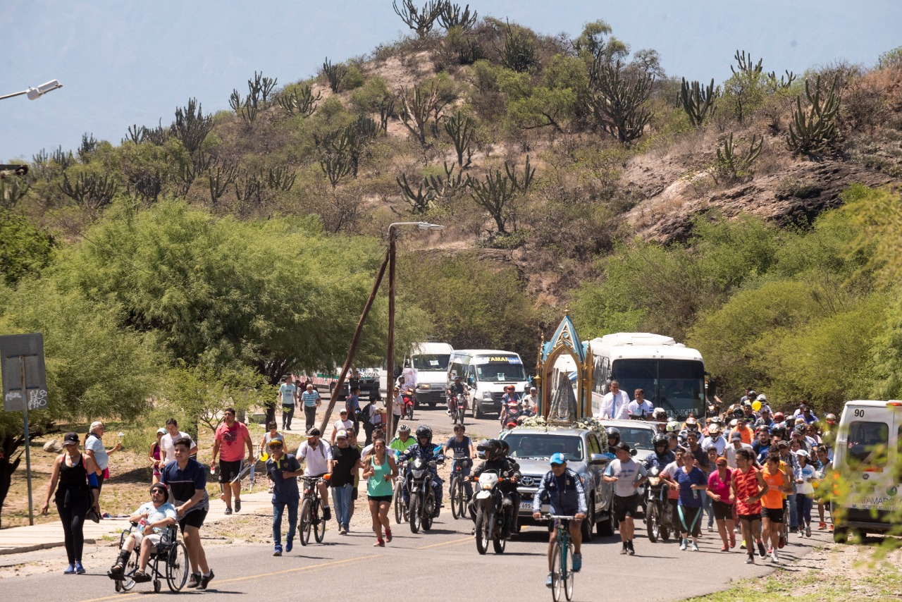 Favio Gimenez nos cuenta como comenzó está travesía, siempre peregrine con la Virgen, soy de el Rodeo y desde allí nos veníamos con amigos por la ruta vieja a las procesiones de la Virgen, o nos íbamos a algún lugar para desde ahí venir hasta La Gruta a dar y tomar gracia, desde que vivo en la capital siempre quisimos hacer algo más por la Morenita y con el grupo de Ciclismo Bikers Maniakos, organizamos una padaleada para muchos amigos que andan en bici, pero que no están en condiciones de hacer grandes recorridos, de ahí planificamos el recorrido «Monumento a la Virgen» de la entrada a Santa Cruz, Ermita, Gruta de la Virgen, Corona en Alameda y Catedral», para que todos puedan peregrinar en grupos de amigos, guiados, asistidos y protegidos en la trayectoria.