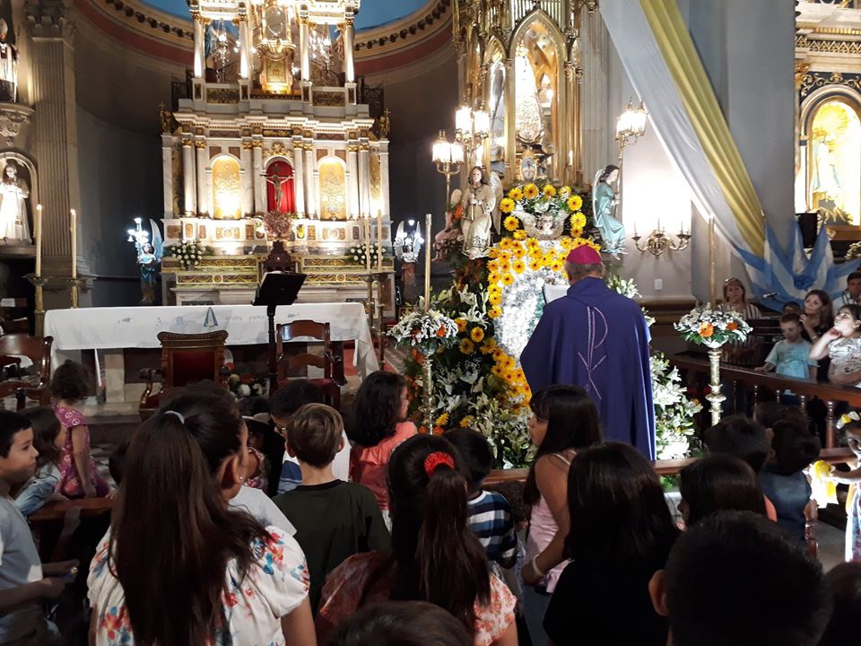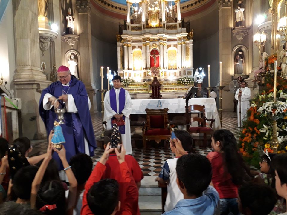 Misa Pastoral de la Niñez. Hermosa misa dedicada a los niños y acompañados de sus familias. El Obispo bendijo a las imágenes que los niños llevaron.