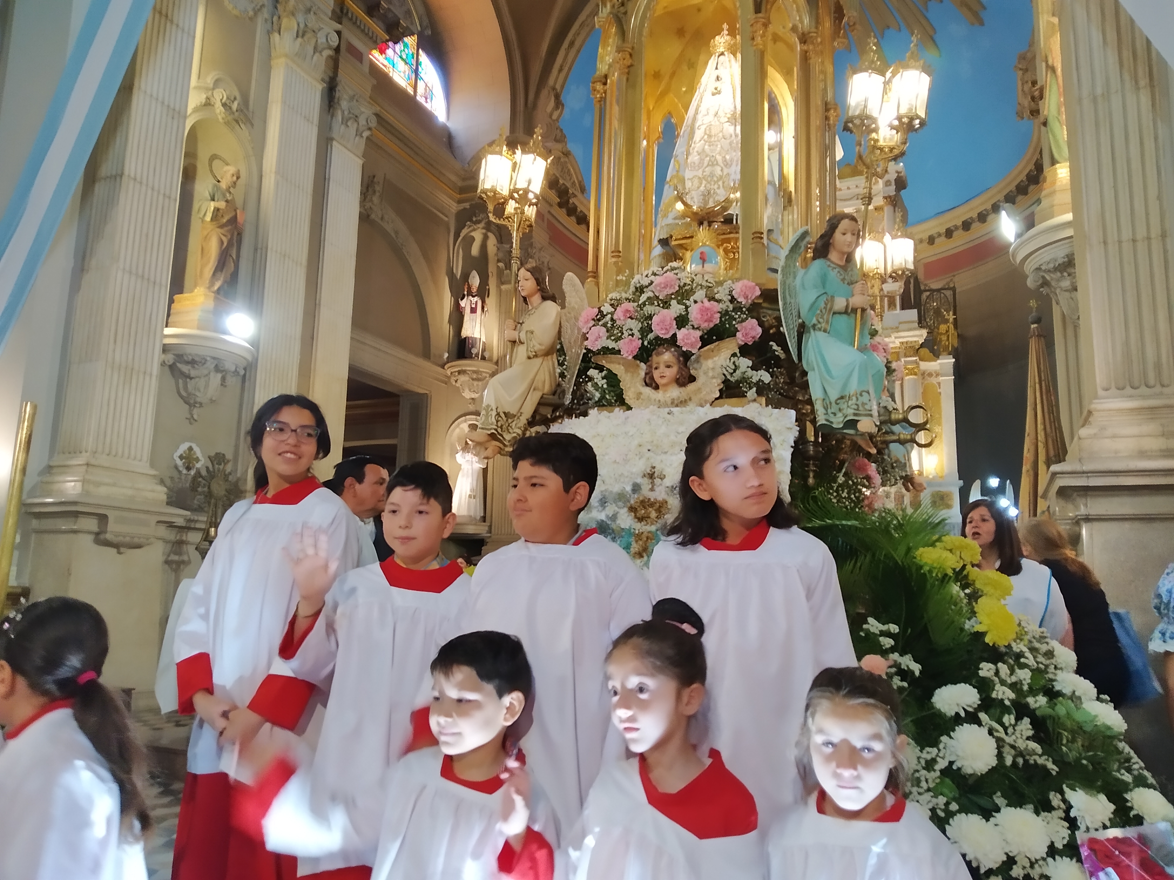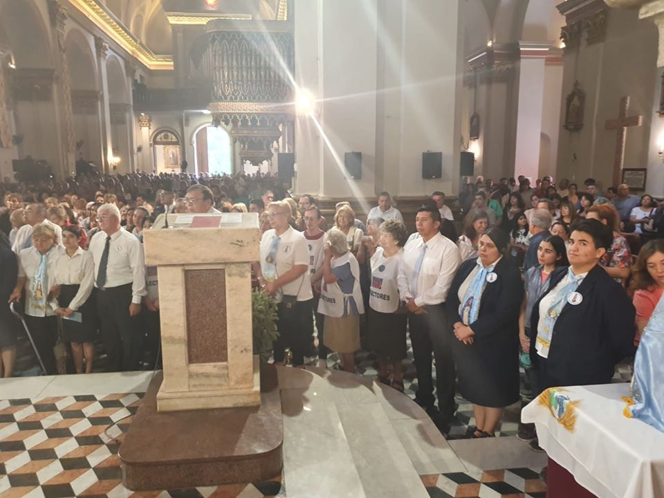 MISA. Servidores y Colaboradores del Santuario: Ministros de la Comunión, Grupo de Liturgia, Sacristanes, Guardianes de la Virgen, Colectores, Damas de la Virgen, Florería, Secretaría, Hospedaje del Peregrino, Sala de Promesas, Servidores Marianos, Acción Católica Catedral, Consagrados y Devotos de María, Servidores-Cadena de la Virgen, Voluntarios de María Solidaria, Museo de la Virgen, Servidores en la Gruta, Equipo Revista Stella, Músicos y Coros; Archivo del Santuario y Santería Madre Morena.