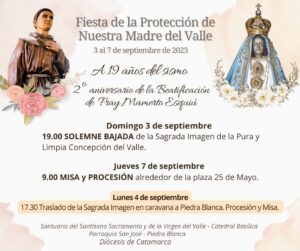 09:00 MISA y PROCESIÓN con la Sagrada Imagen de Nuestra Señora del Valle.