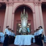A su paso fue saludada por la Gobernadora, Dra. Lucía Corpacci; y el Intendente de San Fernando de la Capital, Lic. Raúl Jalil, junto con autoridades legislativas, judiciales y de las fuerzas de seguridad, y luego colocada en la urna festiva por el Pbro. José Antonio Díaz, Rector del Santuario Mariano, desde donde presidirá las distintas celebraciones del Novenario.