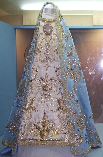 - Todo el material empleado, tanto las telas como joyas y fantasías son donaciones de devotos como expresión de gratitud a la abundancia de favores recibidos de tan misericordiosa Madre.