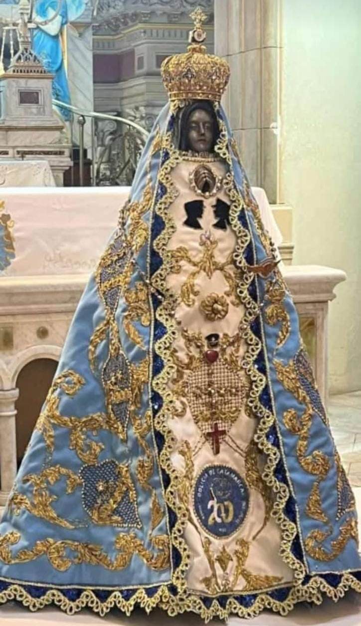 Durante este 15 de agosto, en el día de la Asunción de la Virgen María, la imagen de la Virgen del Valle luce un nuevo manto alusivo a los 200 años de la creación de la Policía de Catamarca, que fue colocado en la víspera de esta jornada.