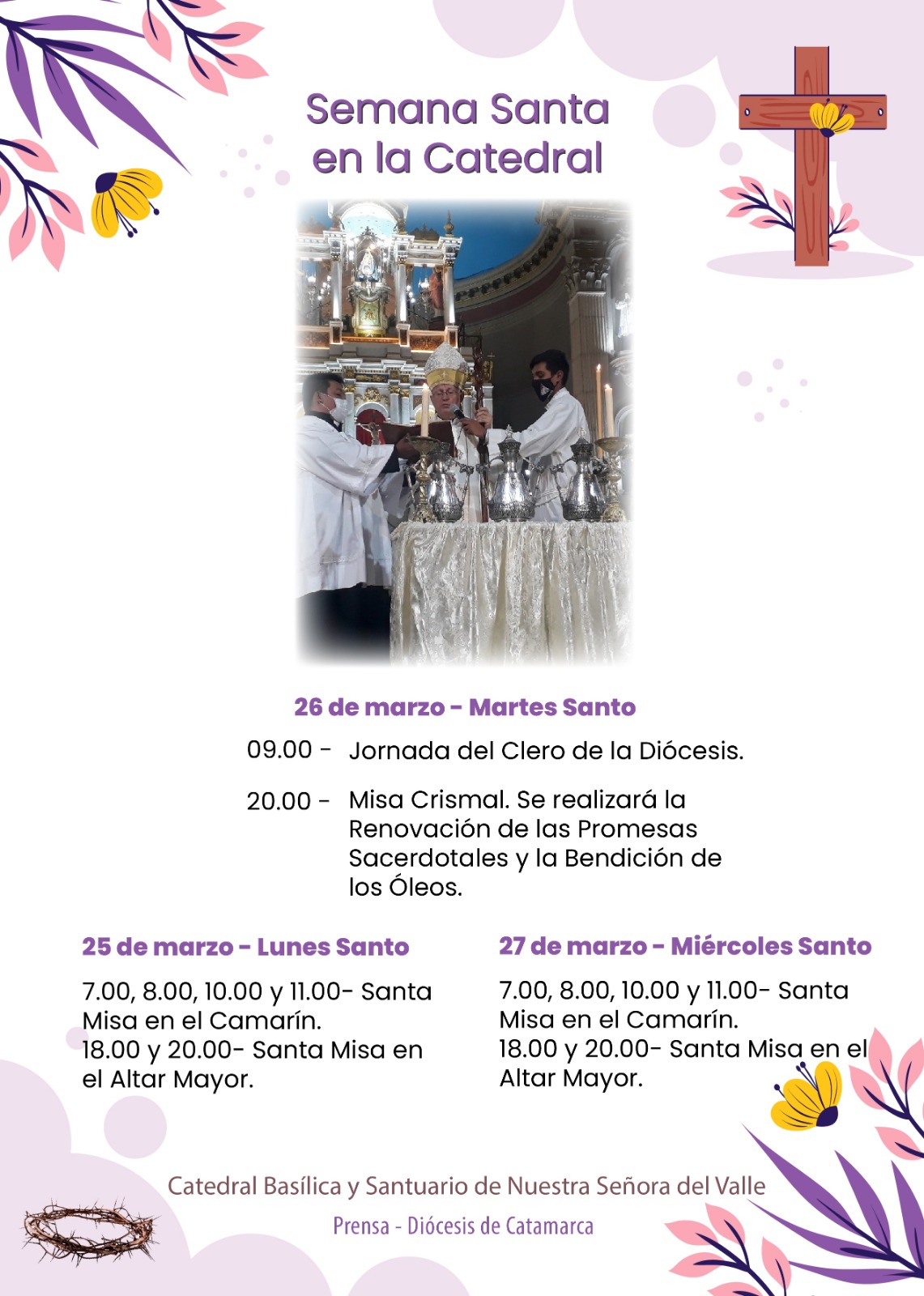 20.00- Misa Crismal. Se realizará la Renovación de las Promesas Sacerdotales y la Bendición de los Óleos.