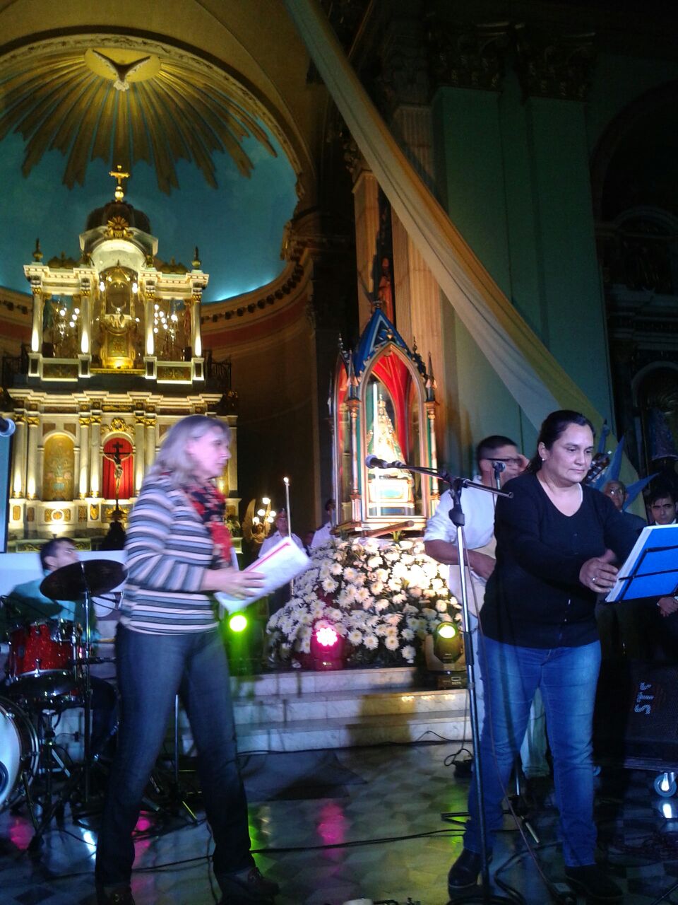 Compartimos con Ustedes imágenes de los restauradores del retablo de la Catedral y del Camarín junto a Rina Quiroga.
