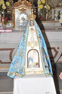 En la parte central del vestido se encuentra la imagen que representa la Encarnación del Hijo de Dios, parte en que rezamos en el Credo : «que fue concebido por obra y gracia del Espíritu Santo”.